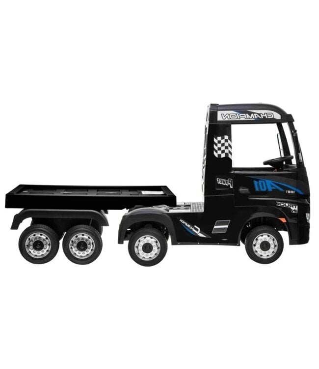 Let your child explore the road in style and with a real trailer! This Mercedes Actros electric kids truck is a tough and realistic model, complete with a trailer. Equipped with four powerful motors and dual 12V batteries, this truck offers excellent performance, ride comfort, and endless fun.