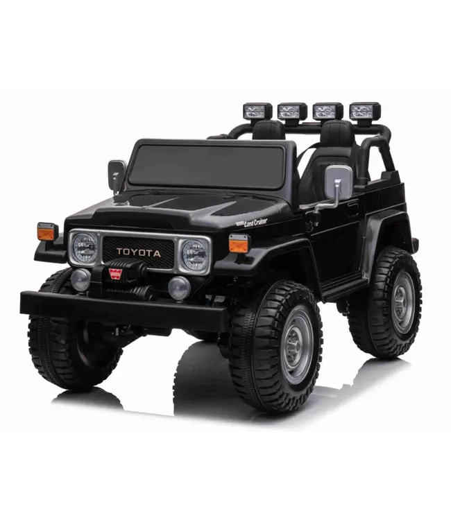 De Toyota FJ40 kinderauto zwart metallic is een stoere en luxe elektrische 2-zitter die speciaal is ontworpen voor jonge avonturiers. Dit model is geïnspireerd op de iconische terreinwagen en combineert een robuust design met moderne afwerking en hoogwaardige details. Dankzij het realistische uiterlijk voelen kinderen zich direct de bestuurder van een echte off-roader.